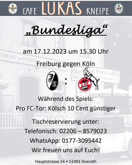 Wir haben bei allen Spielen vom 1. FC Köln geöffnet. Nächstes Spiel:
